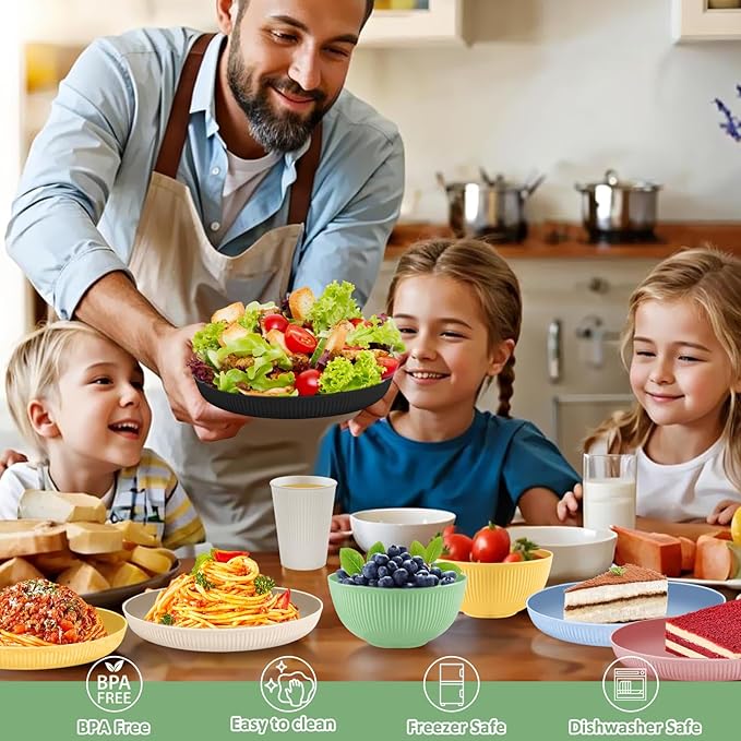 - 100% BPA Free, Non-toxic: Dishware is made of natural wheat straw fiber and food grade PP material, 100% BPA free, non-toxic. This dishware set is lightweight, more durable, and available in more colors than traditional dishes. It's great for a practical and stylish gift for your friends or family