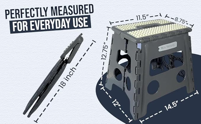 - Portable Design: This folding foot stool is lightweight yet strong, ensuring easy portability. Its compact foldable steps allow for convenient storage and transport, whether you're venturing outdoors or need a quick solution at home or the office. Perfect for kids or adults step stool.
