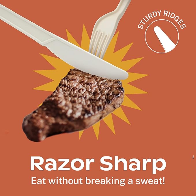- PREPARED FOR EVERY EVENT : Get everything you need in one go with our bulk flatware set, featuring 120 knives (7.0"). From slicing and dicing to scooping and serving, our utensils make handling any dish a breeze. Plus, CORAL's disposable cutlery isn't just convenient—it's also washable and reusable, ensuring sustainability without sacrificing convenience.