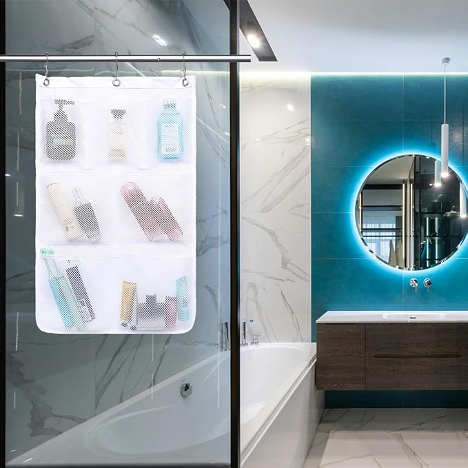 - Quick Drying Mesh Material: Crafted from 100% tear-resistant polyester mesh fabric,upgrade and reinforce,Designed with breathable mesh that allows water to drain easily,ensuring your shower essentials dry quickly and stay clean,this bathroom organizer is designed to last.It effectively drains water,ensuring quick drying and preventing your items from sitting in water