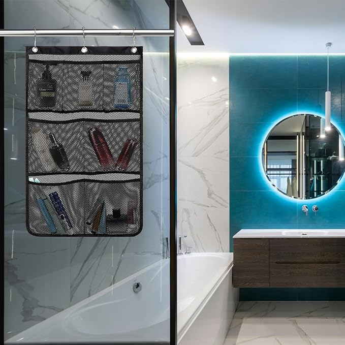 - Quick Drying Mesh Material: Crafted from 100% tear-resistant polyester mesh fabric,upgrade and reinforce,Designed with breathable mesh that allows water to drain easily,ensuring your shower essentials dry quickly and stay clean,this bathroom organizer is designed to last.It effectively drains water,ensuring quick drying and preventing your items from sitting in water