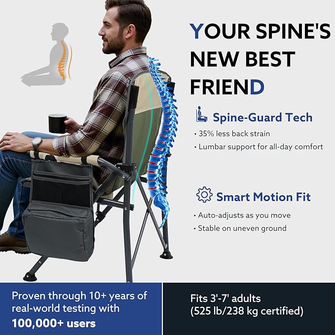 - Proven Comfort for All-Day Lounging ErgoLumbar 3.0 with 100,000+ pressure tests reduces spinal pressure by 62% vs. standard chairs Extra-Wide 24" Gel Seat & 2" Thick Cushion for 8+ hours of fatigue-free comfort Fits users 3'–7', supporting up to 396lbs (525lb Max)—perfect for any adventure