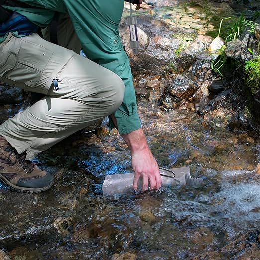 - Wide application: The water filter can be connected directly to a drinking bag, bottled water, or water directly from an outdoor water source without any other attachments. Simple to operate, it ensures water safety for you and your family when you are outdoors.