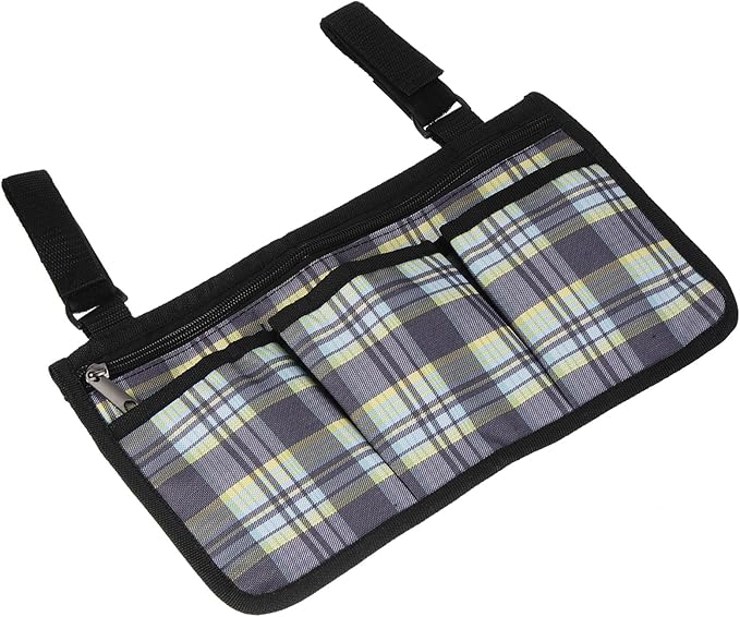 YOKIVE Armrest Organizer, Waterproof Chair Snack Storage Bag with Straps, Great for Camping Beach Daily Use, (Blue Grid, 4 Pockets)