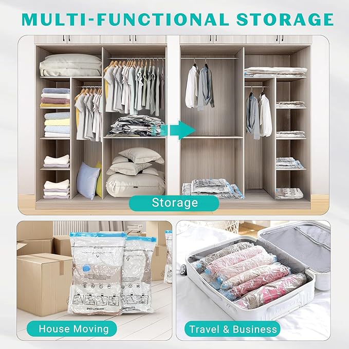 - 【Effective Sealing for 4-6 Months】Storage bags vacuum sealed suitable for multiple situations.Vacuum seal bags for clothing travel,moving storage,seasonal clothes,bedding storage,storing quilts,comforters,packing,space saving,etc.Once sealed, it can maintain a vacuum state for 4-6 months.