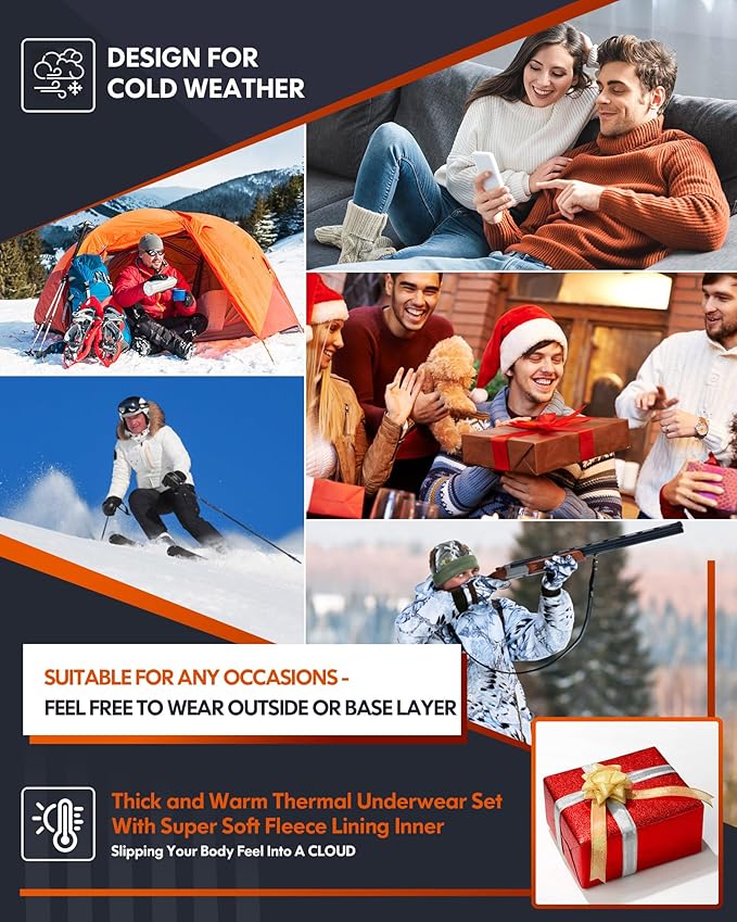 • Best Gift Choice: We stock these heavyweight thermals for men in a wide range of sizes. If your family enjoys hunting;camping;snowboarding;skiing;cycling or running then it will be a great choice. A wonderful Gift for mens Christmas Birthday
