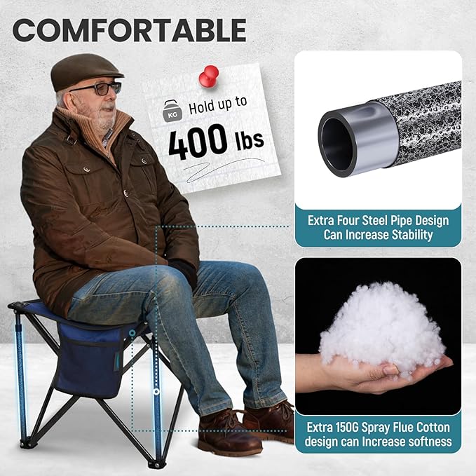 - Padded Seat with Soft Cotton Filling: Featuring a seat with soft, hollow cotton padding, this stool delivers a level of comfort that will make you forget you're sitting on a portable chair. Enjoy added cushioning that enhances your relaxation time outdoors.