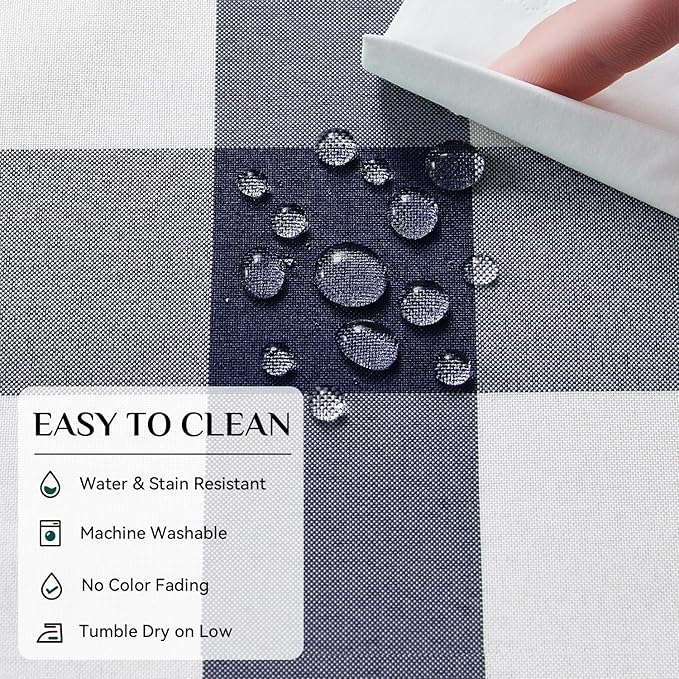 - SPILLPROOF and STAIN RESISTANT: Featuring a fade resistant fabric, the gingham pattern tablecloth is specially treated to be 90% waterproof. Liquids and wine can be easily wiped clean with a damp cloth.