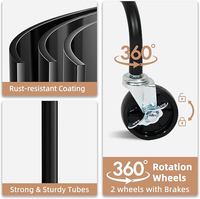 - Smooth and Secure Mobility: With 4 wheels (2 lockable), this metal shoe rack moves easily when needed and stays in place when you don’t want it to budge.