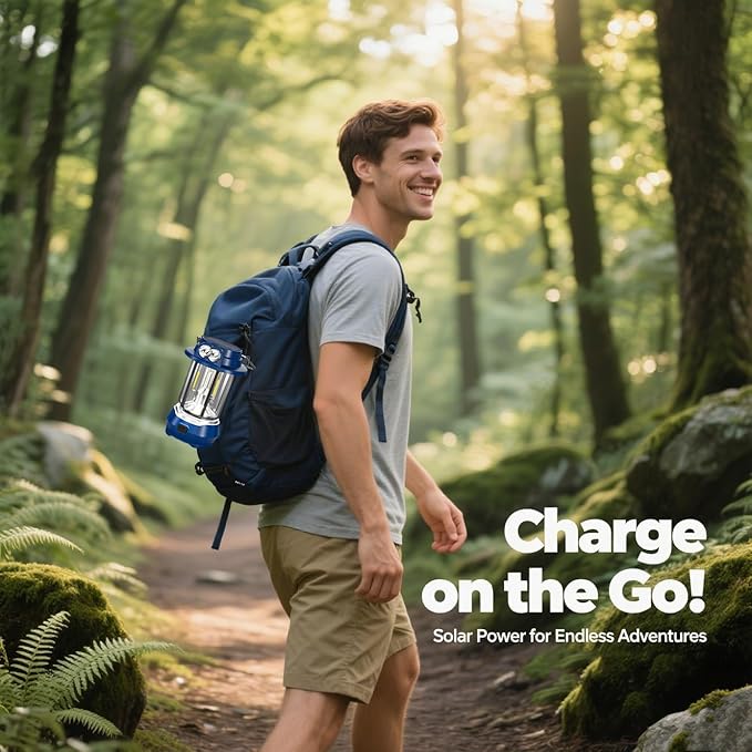 - Dual Charging Options for Convenience:Supports solar charging and USB-C fast charging . Hang it on your backpack for solar-powered during sunny days; use the USB cable for quick recharges on cloudy days. Built-in battery indicators show real-time power to avoid sudden shutdowns.