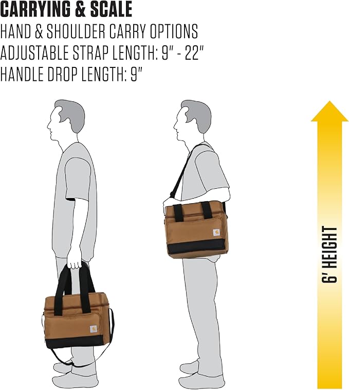 Carhartt Insulated Two Compartment Cooler, Durable Water Repellent Material W/Front Zippered Pocket for Camping, Beach & Travel