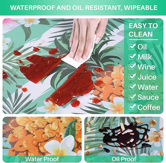 - 【Water and Oil Resistant】The table cloth providing excellent water and oil resistance. Stains can be easily wiped away, keeping the table clean and tidy. Although it cannot be machine washed or bleached, you can easily clean it with a damp cloth. Wrinkles can be ironed out from the back using an iron, ensuring that it maintains its good condition even after long-term use.