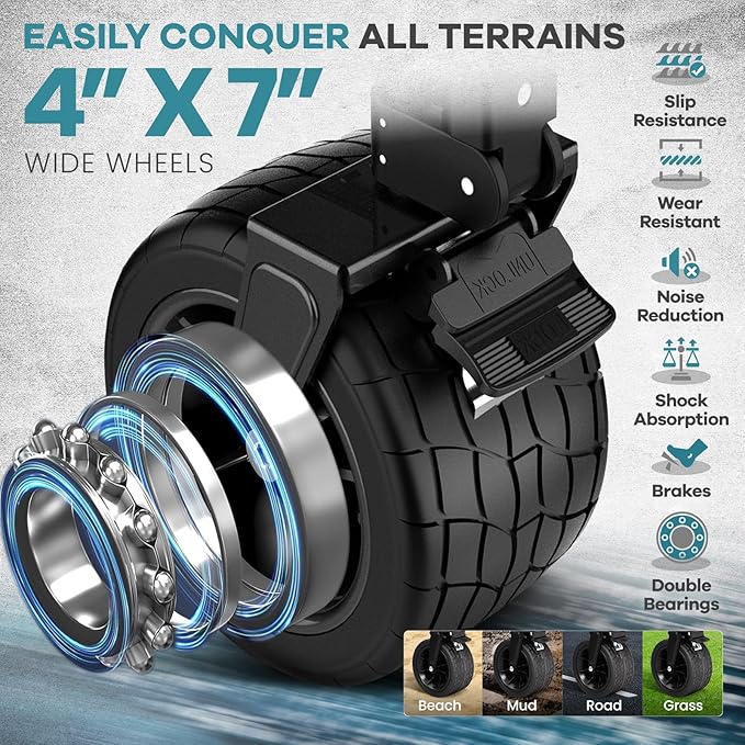 - ALL-TERRAIN OFF-ROAD WHEELS FOR ANY ENVIRONMENT: Equipped with oversized 7" x 4" all-terrain wheels, this collapsible wagon glides effortlessly over sand, gravel, grass, and uneven ground. The integrated brake system ensures safe, stable handling on slopes and downhill paths