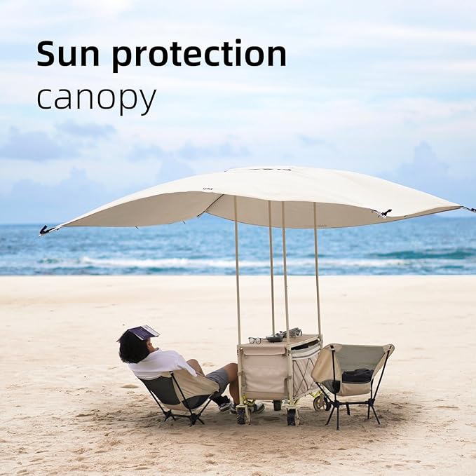 ONEFOREST Collapsible Wagon Cart with Canopy Tent, Portable Large Capacity Foldable Wagon Cart, Heavy Duty Garden Cart with Wheels for Camping Sports Beach Backyard and Picnics, Beige