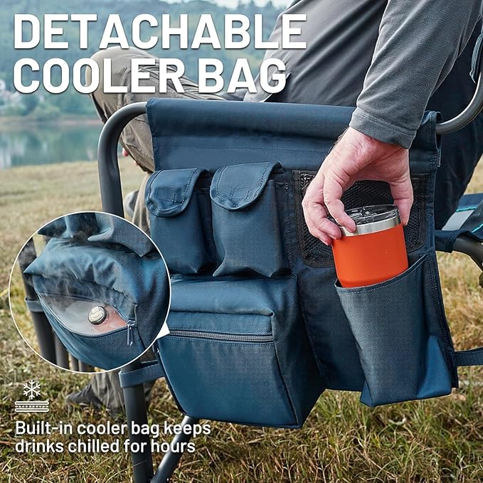 - MULTIFUNCTIONAL USAGE: This oversized directors chair is suitable for camping, traveling, barbecue, picnic, and any other outdoor / indoor activities