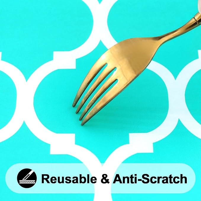 - [Highly Reusable] Our fitted table clothes with classic Moroccan patterns can give you a warm and bright dining environment. It is also suit for a variety of occasions: picnic, camping, party, dining room, kitchen, banquet, patio and more.