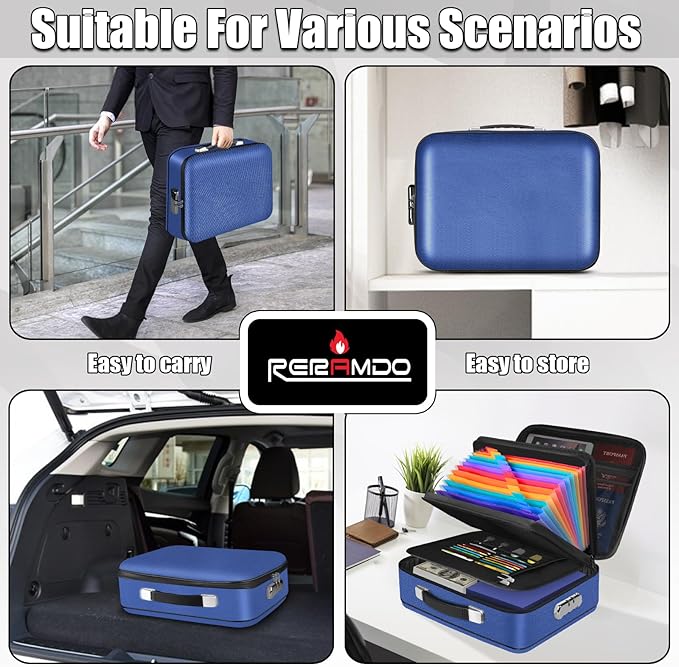 - 【UL-94 VTM-0 certified fireproof box】: RERAMDO fireproof file box surface is made of non-itchy silicone coating and thick flame-retardant fiberglass material, which is fireproof and heat-resistant, and has passed SGS (UL-94 VTM-0) testing and certification. The surface water Resistant material effectively prevents liquid penetration and protects the safety of important documents.