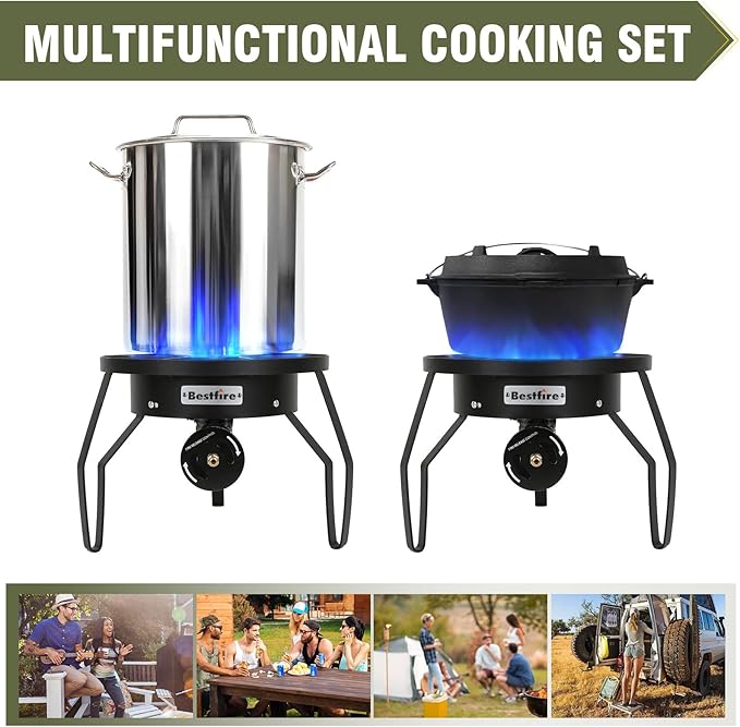 - Strong Firepower: Bestfire propane burner outdoor stove delivers an impressive 200,000 BTU high heat output and features an adjustable air control panel. This allows you to regulate the heat from low to high, enhancing any cooking adventure.