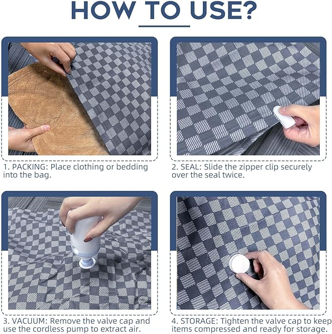 - 【Designed for Travel】——Optimize your suitcase space with these vacuum bags, perfect for organizing clothes and other items on the go. Equipped with a mini cordless electric pump, you can easily compress items anytime, anywhere.