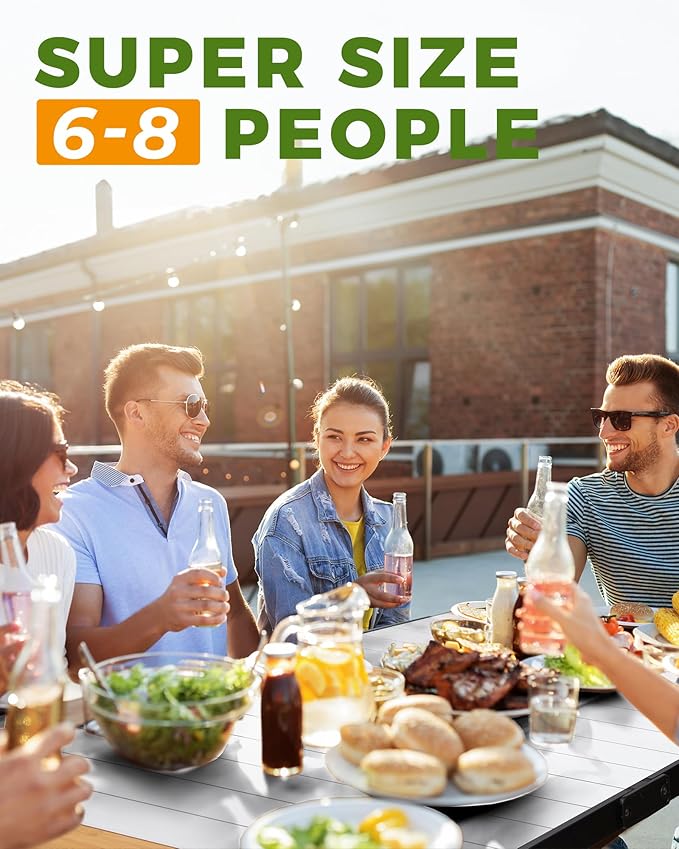 - 【Large Folding Camping Table】The folding camping table spacious desktop area is large enough for 4-6 people,27.5 inches height and triangle structure stent design of camping table can give you enough and comfortable space to put your legs.