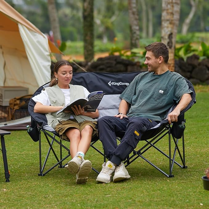 KingCamp Double Camping Chair, Oversized Heavy Duty Loveseat for Adults Portable Folding XL 2 Person Couch Padded Comfortable Two Seat with Cup Holder for Outdoor Lawn Backyard