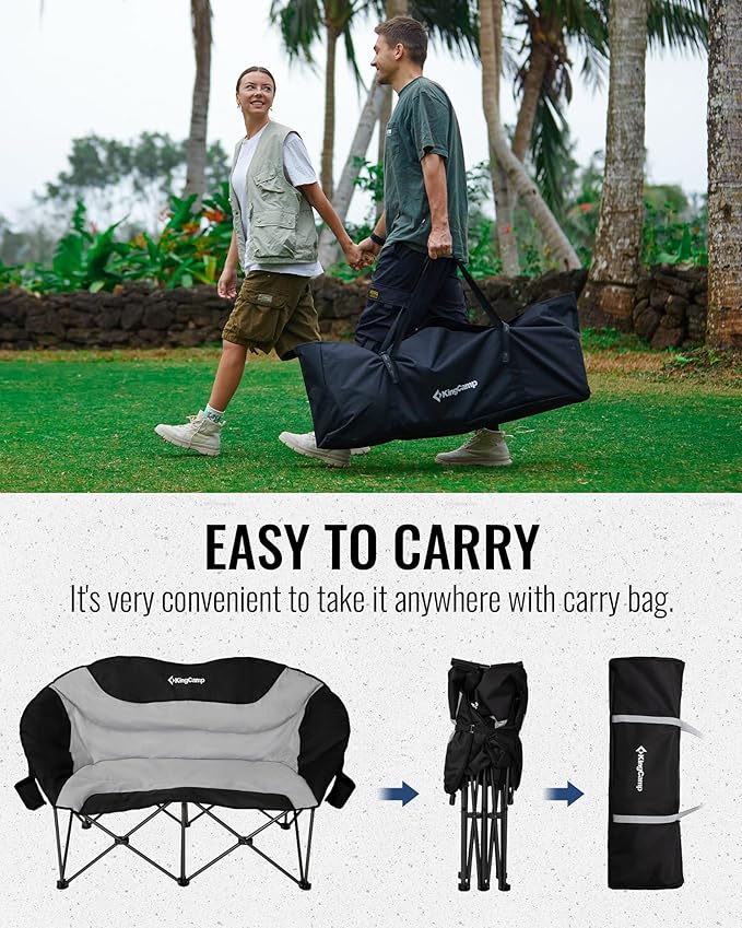 - 【Oversized Padded Comfort】Relax like never before with our oversized 2 person camping chair, designed to be 20% wider than standard loveseats. Featuring 400g/m² padding, this padded chair offers twice the cushioning of regular models, delivering a soft, cozy seating experience for two adults – perfect for long, lazy outdoor days.