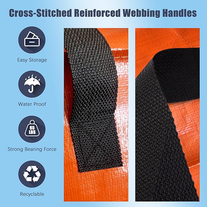 12 Pack Large Strong Moving Bags with Zippers & Carrying Handles - Water-Resistant - Heavy Duty Storage Tote for Space Saving, Fold Flat, Alternative to Moving Box (Orange)
