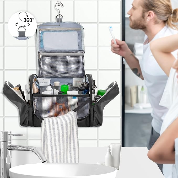 Hanging Toiletry Bag for Men, Tactical Dopp Kit Toiletry Travel Bag, Large Hygiene Organizer Shower Bag for Camping Outdoor, Black