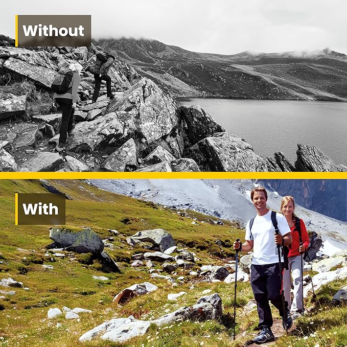 - Durable Yet Lightweight: Made from a unique blend of aluminum and carbon fiber, these hiking poles are lightweight yet resilient. Enjoy the best of both worlds with poles designed to withstand the rigors of tough trails while remaining light enough for extended use. Experience hiking poles for men and women that enhance every adventure, providing strength and support without unnecessary weight, giving you the ultimate trekking experience.