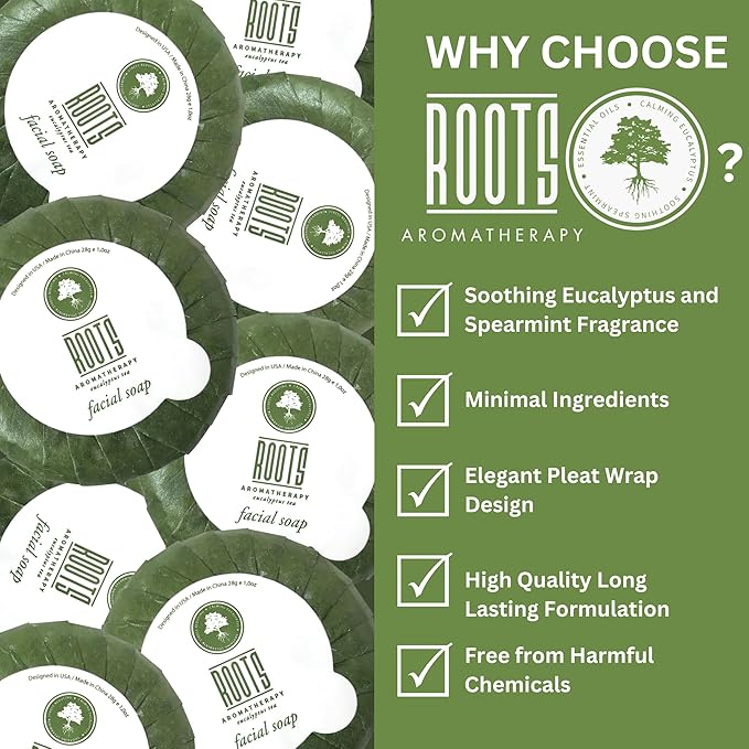 - ๐ฟ REFRESHING & ENERGIZING: Immerse yourself in the invigorating blend of Australian Eucalyptus and rejuvenating tea fragrance. This travel size shampoo and conditioner set, part of our Roots Aromatherapy Eucalyptus Tea Hotel Soaps and Toiletries Bulk Set, harnesses the power of nature to rejuvenate your senses, leaving you refreshed and revitalized after every use.