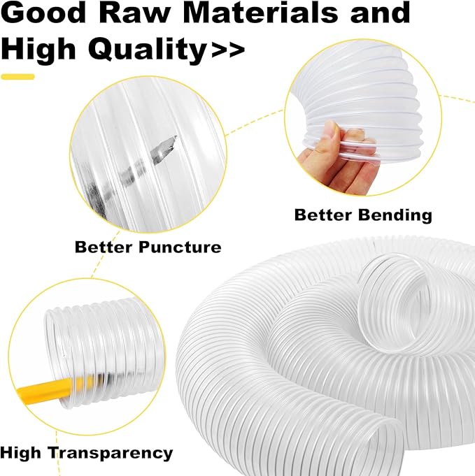- 【HIGH QUALITY PVC】The dust collection hose is odorless, made of high quality PVC material, which is more transparent and has better puncture resistance.