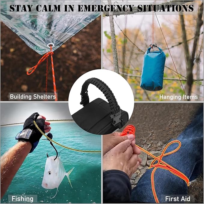 - Our tactical toiletry bag is equipped with a paracord buckle handle, the buckle handle is made of military grade 550 paracord, you may use it for building shelters, first aid, fishing and securing your essential gears & supplies while outdoors. Take with our tactical toiletry bag, take with safety and confidence.