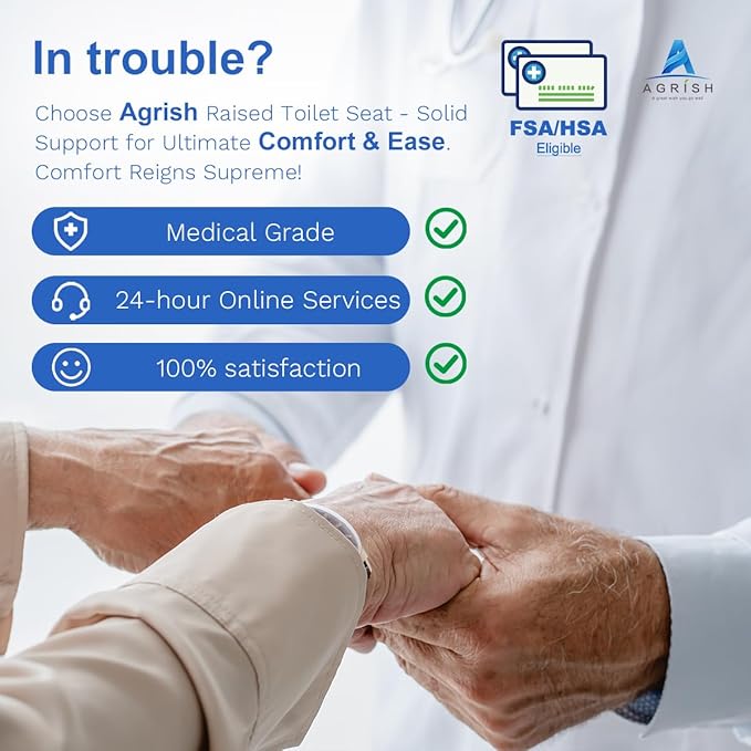 - FSA/HSA ELIGIBLE - Now FSA/HSA is ready to roll, making it a breeze to buy our Agrish toilet riser with handles for your family. Time to make those safety dreams a reality with your FSA account!