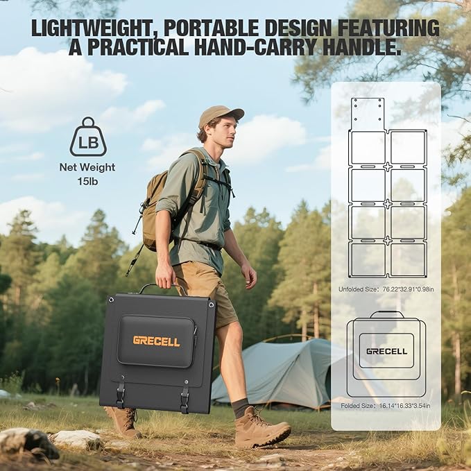 - 【Wide Compatibility】 The GRECELL foldable solar panel features multiple connectors (XT60/Anderson/DC7909/DC8020) for universal compatibility with most power stations, including Jackery, EcoFlow, Anker and Bluetti. This portable solar solution delivers reliable charging power wherever you go.