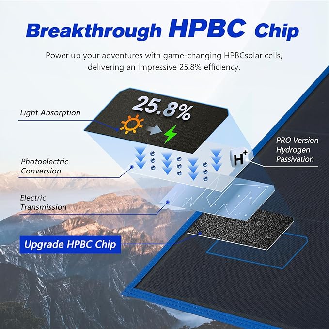 - ☀【Ground-breaking HPBC Technology】: Energize your outdoor adventures with our ATEM POWER 300W solar blanket, featuring innovative HPBC cells. Rv solar kit by relocating metal contacts to the back, these cells reduce shading and capture more sunlight, pushing efficiency to new heights. Foldable solar with a powerful 25.8% conversion efficiency, you’ll get maximum energy output, ensuring reliable power for all your off-grid adventures.