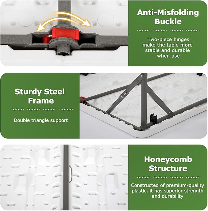 - Strong Load-Bearing Capacity:Heavy-duty folding table features a durable tabletop that can easily withstand heavy items and everyday use. helping it hold up to 330 pounds.