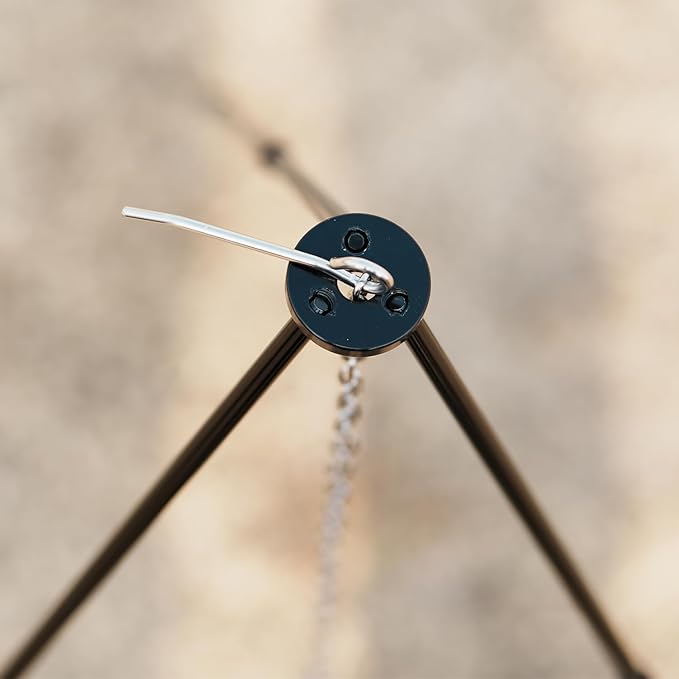 - Multi-Functional Design:Equipped with a hanging hook, this tripod can hold kettles, coffee pots, grills, hanging pots, Dutch ovens, and more – perfect for all your outdoor cooking needs