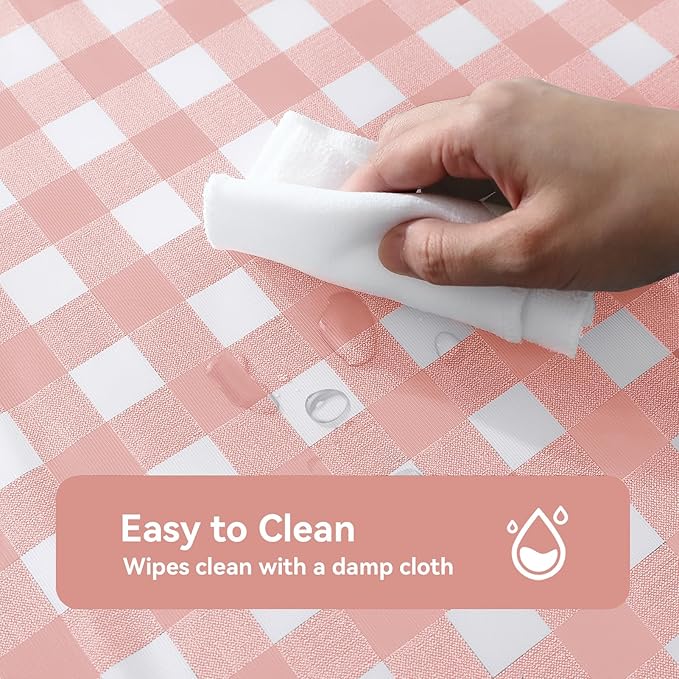 Romanstile Rectangle Plastic Tablecloth, 100% Waterproof Oil-Proof Checkered PVC Table Cloth, Heavy Duty Vinyl Table Cover for Dining, Camping, Picnic, Outdoor - 54 x 54 Inch, Light Pink