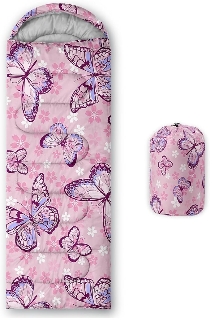 Sleeping Bags for Adults and Kids,3D Printing Camping Sleeping Bag for Girls Boys Lightweight Waterproof Cold/Warm 3-Season,Outdoor Travel with Compression Bags