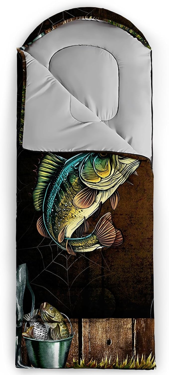 Sleeping Bags for Adults and Kids,3D Printing Camping Sleeping Bag for Girls Boys Lightweight Waterproof Cold/Warm 3-Season,Outdoor Travel with Compression Bags