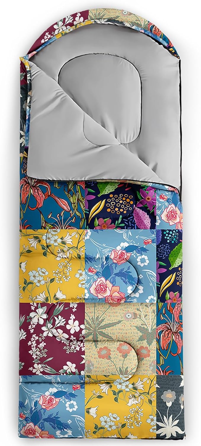 - Premium Material - The camping sleeping bag is made of premium 220T ripstop microfiber fabric,comfortable and breathable,lined with 220T cotton pongee. The waterproof outer protective shell is made of a unique hexagonal design and high-quality Material with double S-stitching and microfiber filling for optimal warmth and insulation to protect you from the elements. The bright colors are loved by boys and girls,great for kids and adults alike!