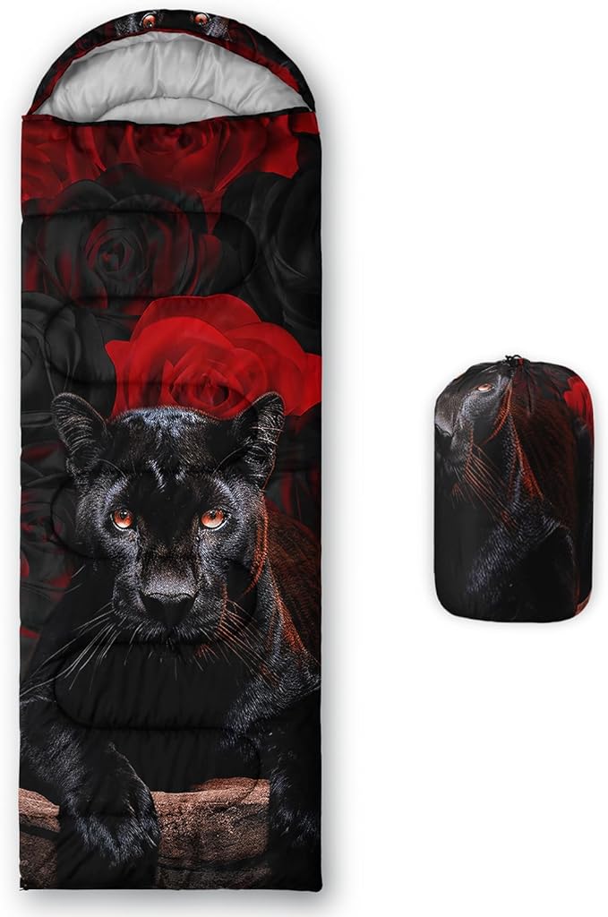 Sleeping Bags for Adults and Kids,3D Printing Camping Sleeping Bag for Girls Boys Lightweight Waterproof Cold/Warm 3-Season,Outdoor Travel with Compression Bags