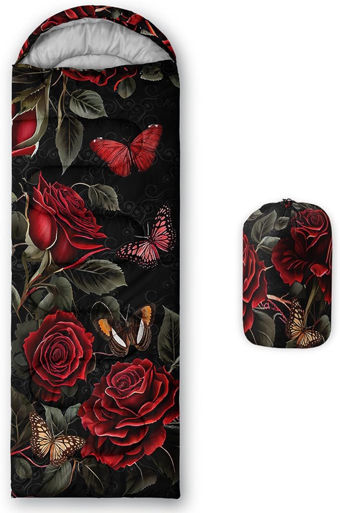 Sleeping Bags for Adults and Kids,3D Printing Camping Sleeping Bag for Girls Boys Lightweight Waterproof Cold/Warm 3-Season,Outdoor Travel with Compression Bags