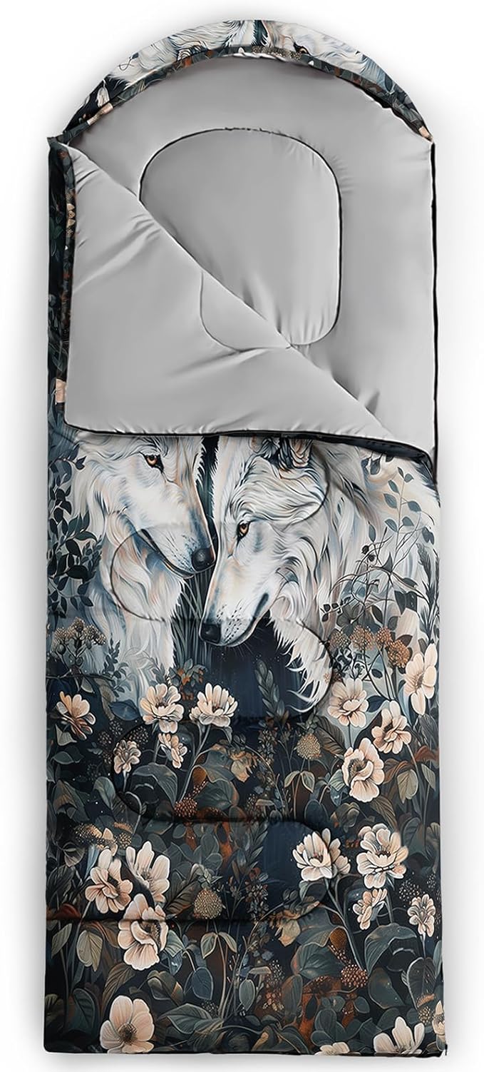 Sleeping Bags for Adults and Kids,3D Printing Camping Sleeping Bag for Girls Boys Lightweight Waterproof Cold/Warm 3-Season,Outdoor Travel with Compression Bags