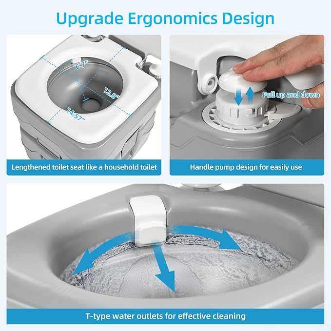 - Ample Capacity with Easy Waste Level Check: With a 2.64-gallon fresh water tank and a 5.8-gallon waste tank, this camp toilet minimizes frequent refills and emptying. The waste level indicator keeps you informed, so no more unexpected overflow surprises during your trip