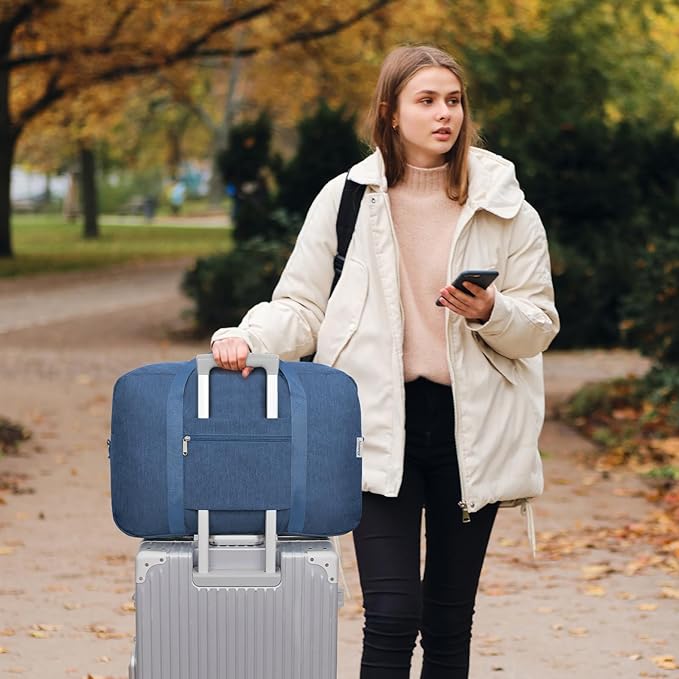 Carry on luaggage 22x14x9 Airlines Approved Foldable Carry on Bag Packable Duffle Overnight for Women and Men 40L (Navy Blue-1)