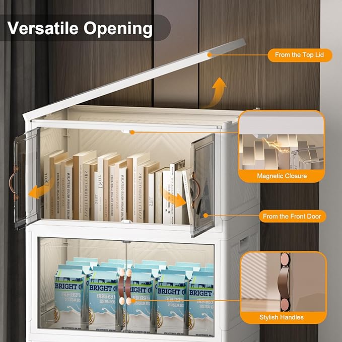 - 【Multi-Access Design for Effortless Organization】: Our versatile stackable storage bins open front offer front-opening bins for quick grab-and-go access. Use stackable storage bins with lids or stackable storage bins with doors to conveniently access items while keeping them protected and neatly contained.