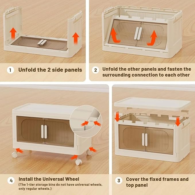 - 【Quick Assembly & Easy Folding】Designed with an integrated folding mechanism, this stackable storage bin offers versatile use and effortless storage. Whether you need extra space for seasonal items or want to free up room, simply fold it away. The quick assembly ensures you can set it up or pack it down in seconds, making it perfect for any home or dormitory.