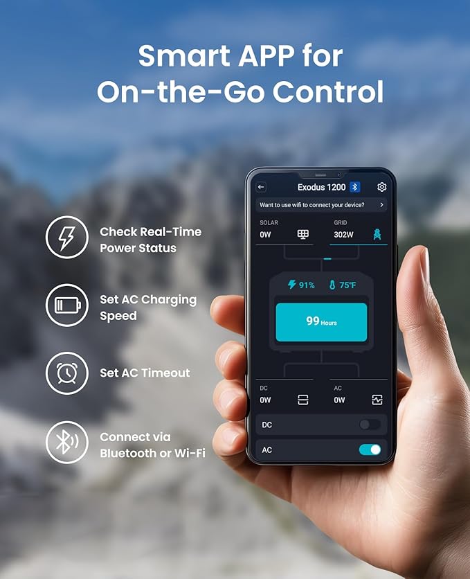 - 【Power Your Essentials Anywhere】 – With a 992Wh capacity and 1200W rated output (1500W boost, 3600W surge), the Exodus 1200 is perfect for powering appliances, tools, and electronics on the go or during outages.