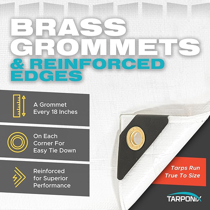- Reinforced Hem for Extra Strength: There are poly ropes sewn in the hem along all edges that protect from tearing and deformation making this tarp an asset for heavy-duty use.